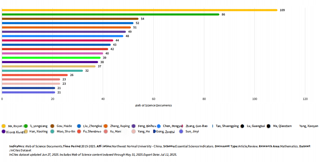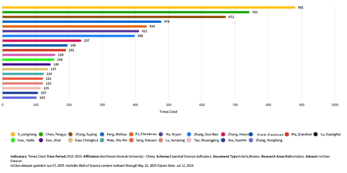 根据科睿唯安(Clarivate Analytics)于2025年7月10日公布的ESI(Essential Science Indicators,基本科学指标数据库)最新数据显示,西北师范大学数学学科新晋为ESI全球前1%学科。这标志公司在数学学科领域迈入了国际高水平行列,实现了团队建设的新突破。