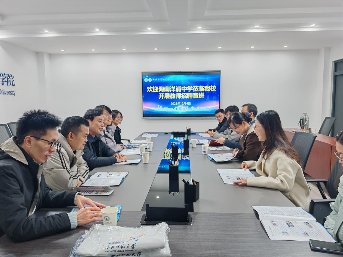 12月4日,海南省洋浦中学董事长徐晓兵、副董事长孙凡一行5人莅临公司B310会议室开展教师招聘宣讲会。公司党委副书记张向东、毕业生班主任张旭萍以及部分毕业生参加招聘宣讲会。
