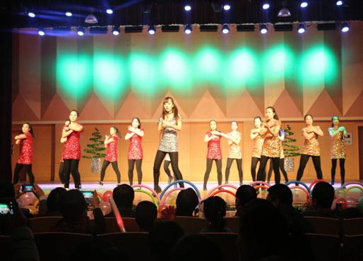 晚会节目形式多样,内容丰富,歌曲、舞蹈、相声、小品、情景剧等节目精彩纷呈。马国顺和马慧莉老师深情演唱的《在我生命中的每一天 》、郭晓斌和汪璇老师合唱的《红尘情歌》以及狄振兴老师和员工的联唱把整个晚会推向了高潮,员工表演的舞蹈《刀郎舞》、《民族大融合》、爵士舞串烧、小品《好日子到头了》、魔术《赤色奇迹》、相声《书文戏里》、员工独唱《站在草原望北京》以及员工的歌曲联唱等精彩节目为全院师生送上最美好的新年祝福。