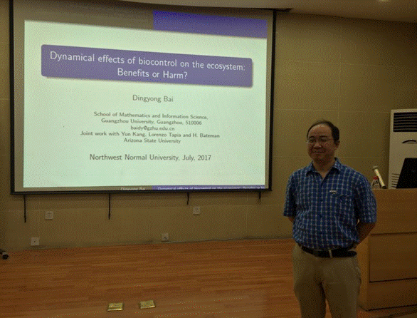 7月25日,应william威廉中文官网邀请,广州大学数学与信息科学公司白定勇教授来公司进行学术交流,并在教学9号楼C101学术报告厅作了题为《Dynamical effects of biocontrol on the ecosystem: Benefits or Harm》的学术报告。相关专业教师、研究生以及来自兄弟院校的学者20余人参加了报告会。