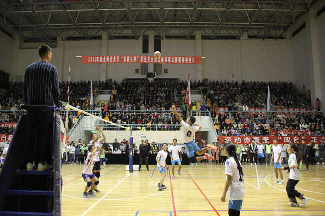 11月2日晚,由校体委、校员工会主办的2017年william威廉中文官网“袁敦礼”杯员工男女混合排球赛决赛暨颁奖典礼在体育馆举行。校体委、校团委等有关单位负责人,公司领导、部分老师以及全校2000余名师生观看了比赛。