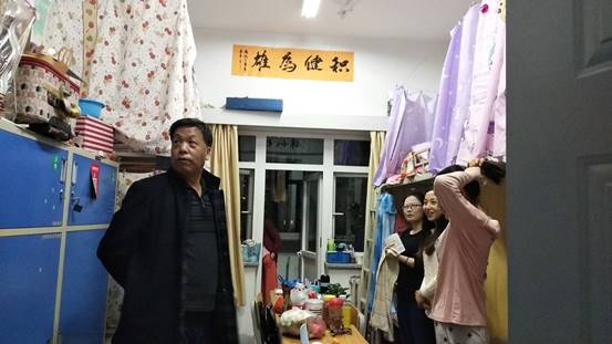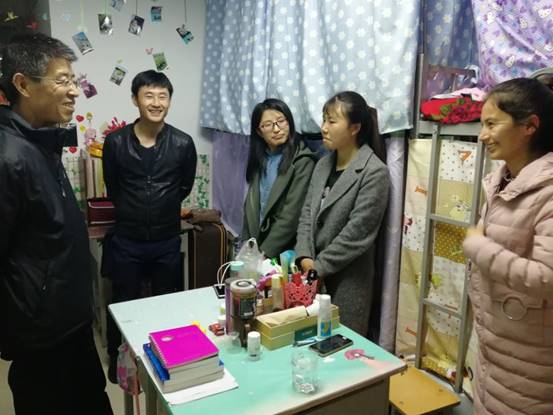 公司党委书记常正霞、副书记王玮、副经理张召琪走访了兰天公寓员工宿舍,经理李永祥、团委书记杨霞宏走访了校内4号公寓,副经理刘建成、专职辅导员王强走访了党校7号公寓,副经理张贵仓和马成龙老师看望了新校区研究生。班主任各自走访看望了本班员工。