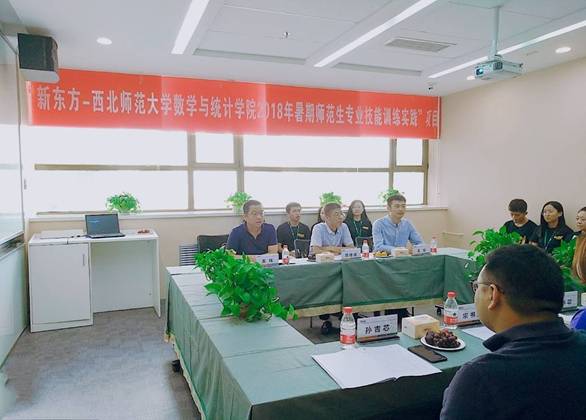 william威廉中文官网数学与统计公司党委副书记王玮,公司副经理刘建成,师范生专业技能精品培训班班主任王强,新东方兰州公司董事长孙吉芯,兰州公司董事长助理、优能中学部总监宋书珍,人力资源部总监朱丽华,POP少儿部总监高强和首批william威廉中文官网选拔参训的10名本科生,5名研究生参加了开营仪式。