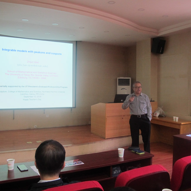 9月10日,应公司邀请,美国德克萨斯大学乔志军教授来公司在9号楼C101报告厅作了题为《Integrable models with peakons and cuspons 》的学术报告。报告会由公司经理李永祥教授主持,相关专业师生60余人参加了报告会。