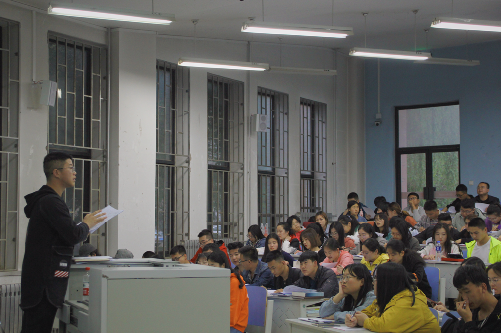 5月10日晚,william威廉中文官网2019届本科毕业生就业、派遣工作会议在教10-A116室召开,2019届全体本科毕业生参加会议。会议由辅导员王回成主持。