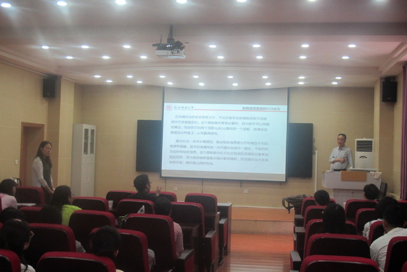 7月9日,应公司邀请,陕西师范大学杨波教授来公司作了题为《损耗陷门函数及应用》的学术报告。报告会由杜小妮教授主持,相关专业师生约35人参加了报告会。