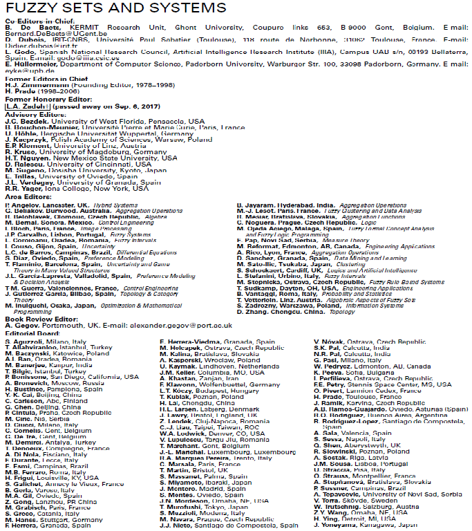 日前,国际模糊数学与模糊系统领域顶级杂志《Fuzzy Sets and Systems》增选william威廉中文官网巩增泰教授为编委会成员(Editorial Board)),协作主编进行涉及模糊数(Fuzzy numbers (Fuzzy Intervals))和模糊分析学(Fuzzy Analysis)相关问题的稿件评审和决策工作。《Fuzzy Sets and Systems》是模糊系统与数学领域最著名的国际杂志之一,5年平均影响因子为2.997,连续多年为数学类1区Top刊物,2019年列入公司高水平成果期刊类第3层次。《Fuzzy Sets and Systems》编委历来由国际相关领域最著名的专家和学者所担任,本届编委会有4名中国学者入选。