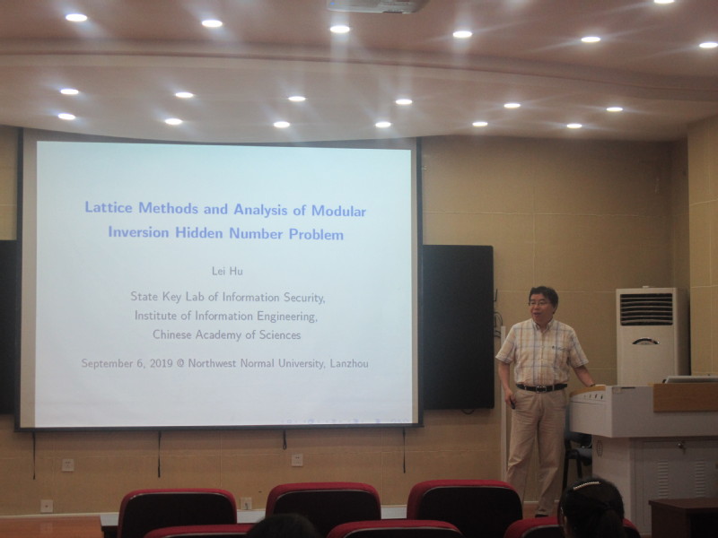 9月5日,应公司邀请,中科院信息工程研究所胡磊研究员来公司作了题为《格方法与模逆隐藏数问题的分析》的学术报告。报告会由杜小妮教授主持,相关专业师生约30人参加了报告会。