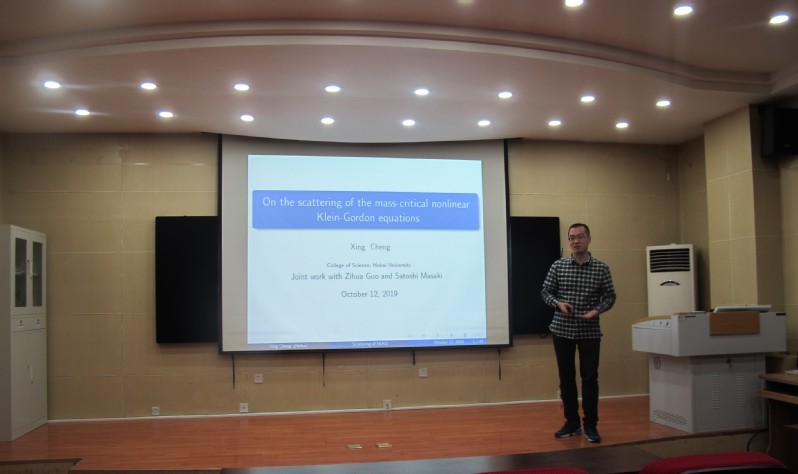 10月12日,应公司邀请,河海大学程星教授来公司进行学术交流,并在教学9号楼C101学术报告厅作了题为《On the scattering of the mass-critical nonlinear Klein-Gordon equations》的学术报告。报告会由冯斌华副教授主持,相关专业师生40余人参加了此次报告会。