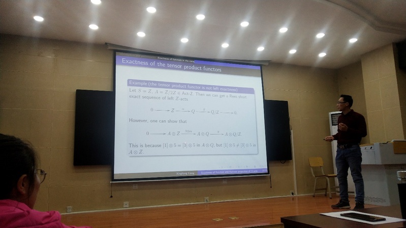 在报告中,梁星亮博士主要介绍了近年来半群的S-系理论研究的进展,重点介绍了利用S-系方法研究幺半群和半群的区别及联系,以及国际上在Morita等价理论方面的主要工作。同时,介绍了自己最新的研究成果。报告结束后,梁星亮博士就与会师生提出的相关问题作了解答,并与公司师生进行了广泛的交流和讨论。