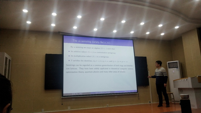 在报告中,任苗苗副教授主要介绍了簇的概念,以及簇的等价刻画,清晰展示了这个概念的重要理论意义。同时,介绍了报告人重点在半群簇方面的研究成果,以及有关簇的研究的公开问题。报告结束后,任苗苗副教授就与会师生提出的相关问题作了解答,并与公司师生进行了广泛的交流和讨论。