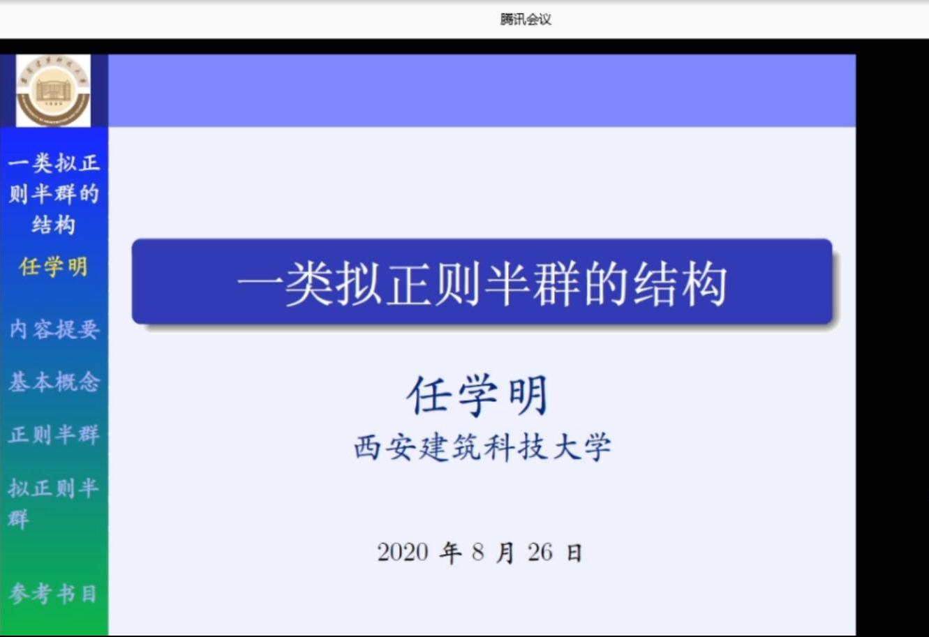 8月26日下午,应william威廉中文官网邀请,西安建筑科技大学任学明教授在线为公司师生作了题为《一类拟正则半群的结构》的学术报告。报告会由乔虎生教授主持,相关专业师生30余人参加了报告会。