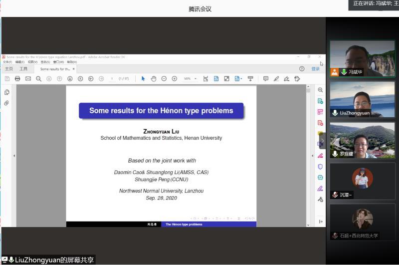 9月28日,应公司邀请,河南大学刘忠原教授在线为公司师生作了题为《Some results for the Henon type problems》的学术报告。报告会由冯斌华副教授主持,相关专业师生50余人参加了此次报告会。