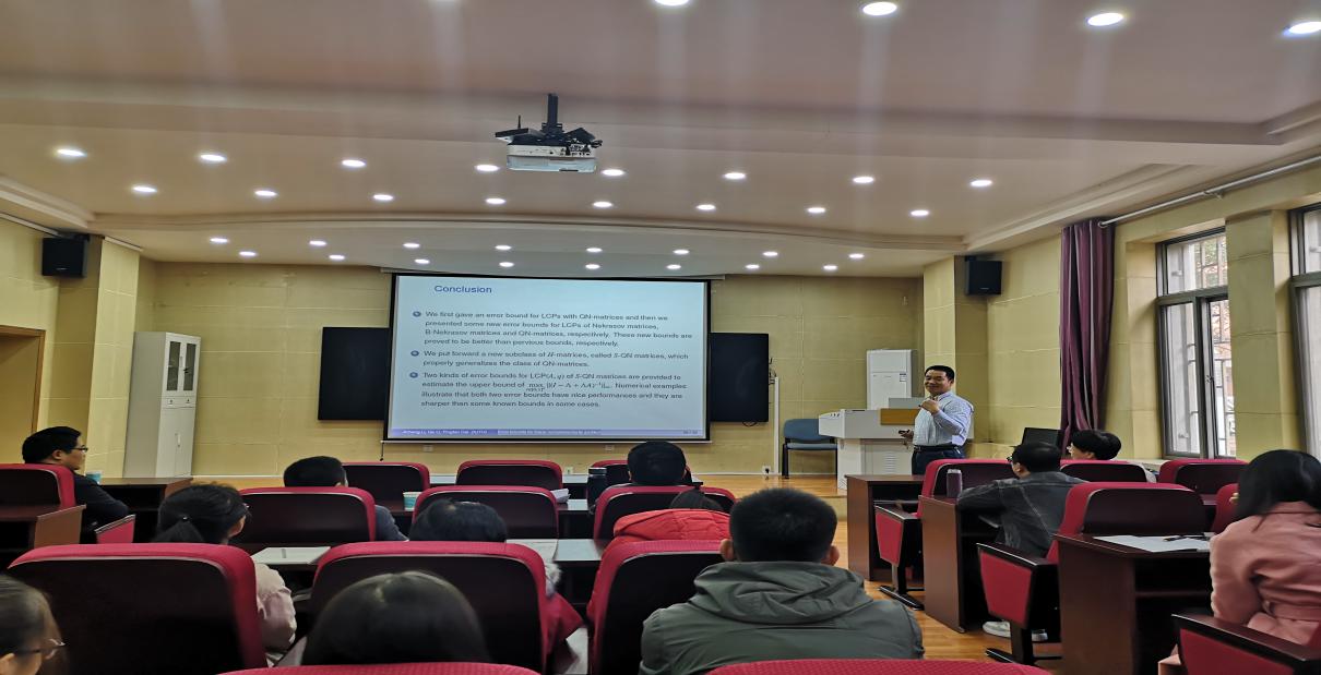 10月31日,应公司邀请,西安交通大学李继成教授来公司进行学术交流,并在教学9号楼C101学术报告厅作了题为《Error bounds for linear complementarity problems》的学术报告。报告会由孟令胜副教授主持,相关专业师生30余人参加了此次报告会。