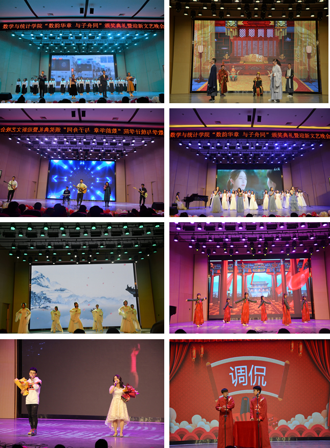 晚会以“数韵华章 与子舟同”为主题,伴乐诗朗诵《在一起》充分展示了全国人民在抗击新冠肺炎疫情中所形成的“生命至上,举国同心,舍生忘死,尊重科学,命运与共”的伟大抗疫精神;激情澎湃的乐队表演《生命因你而火热》《你都忘了你有多美》《你是人间四月天》,带观众走进了一个充满精彩和美好的生活世界;古风舞蹈《烟雨行舟》《雁归来》则将“凭栏孤伞舟前立,风吹杨柳细”和“浩气长存贯八面,傲气长存走四方”的古风古韵展现的淋漓尽致;现代舞蹈《Good boy》尽显数统学子多才多艺、风华正茂朝、气蓬勃的精神风貌;维吾尔族舞蹈《那孜库姆》、苗族和藏族舞蹈串烧《民族舞魂》、苏丹职工舞蹈《Sudan culture》充分展现了民族团结、睦邻友好的家国情怀;独唱《红梅赞》、合唱《“星”的甜蜜》、歌曲串烧《乘风破浪》更是将晚会推向高潮;小品《火炬手》、话剧《皇帝与刺客》、相声《调侃》引得观众爆笑不断、掌声阵阵。最后,晚会在师生共同演唱的歌曲串烧《来日纵是千千晚星》中圆满落下帷幕。
