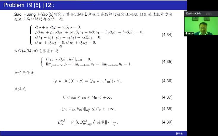 秦玉明教授首先介绍了MHD方程的研究背景,并从二维MHD方程、三维MHD方程、其他边界层方程等方面对MHD方程进展详细介绍,并详细讲解了研究思路、方法以及目前的研究成果。最后秦玉明教授分享了在该领域做科学研究和公司产品的经验和思路,鼓励研究生积极探索新的研究领域,拓宽研究范围,取得新的研究成果。