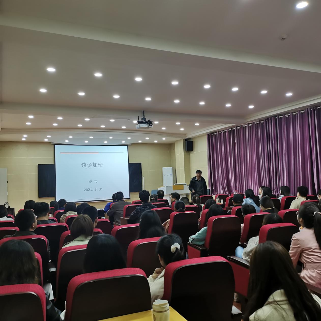 3月31日,应公司邀请,中国科公司信息工程研究所研究员,中国科公司大学岗位教授,博士生导师李宝教授在教学9号楼C101学术报告厅作了题为“谈谈加密”的学术报告。报告会由颜荣芳教授主持,相关专业师生80余人参加了报告会。