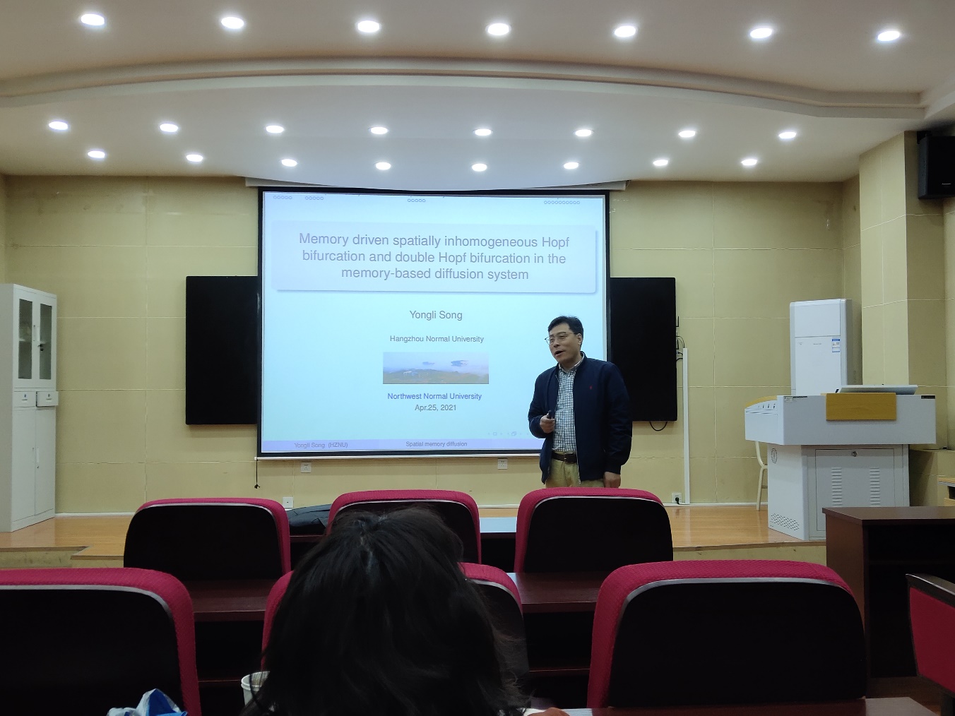 4月25日,应公司邀请,杭州师范大学“钱江学者”特聘教授宋永利为公司师生作了题为《反应扩散方程的分支理论及斑图动力学》的学术报告,相关专业师生50余人参加了报告。