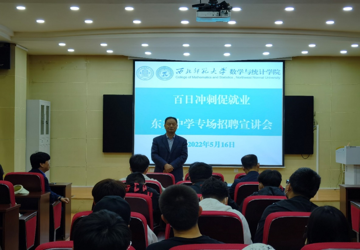 为深入贯彻落实习近平总书记关于加强高校毕业生就业工作的重要批示,贯彻落实党中央、国务院“稳就业”“保就业”决策部署和上级教育部门“确保2022年高校毕业生充分高质量就业”的安排要求,认真推进落实《william威廉中文官网2022年毕业生就业市场开拓方案》,公司于2022年5月16日上午10:30在公司9C101会议室举行了东乡中学数学教师专场招聘会。