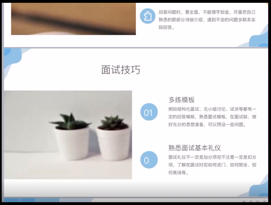 祁正杰同学认为“明确未来计划”“明确自我能力”“确定奋斗方向”“实现自我价值”是面试成功或考研上岸不可或缺的能力。他认为制作一份漂亮大方的简历在求职时非常重要,建议同学们要提前准备好自己的求职简历;以应聘高中数学老师为例,从熟悉教材、练习板书、教案设计等角度分享了自己在求职过程中的准备过程,最后,从仪态着装方面,介绍了怎样的表现在求职中更有优势。