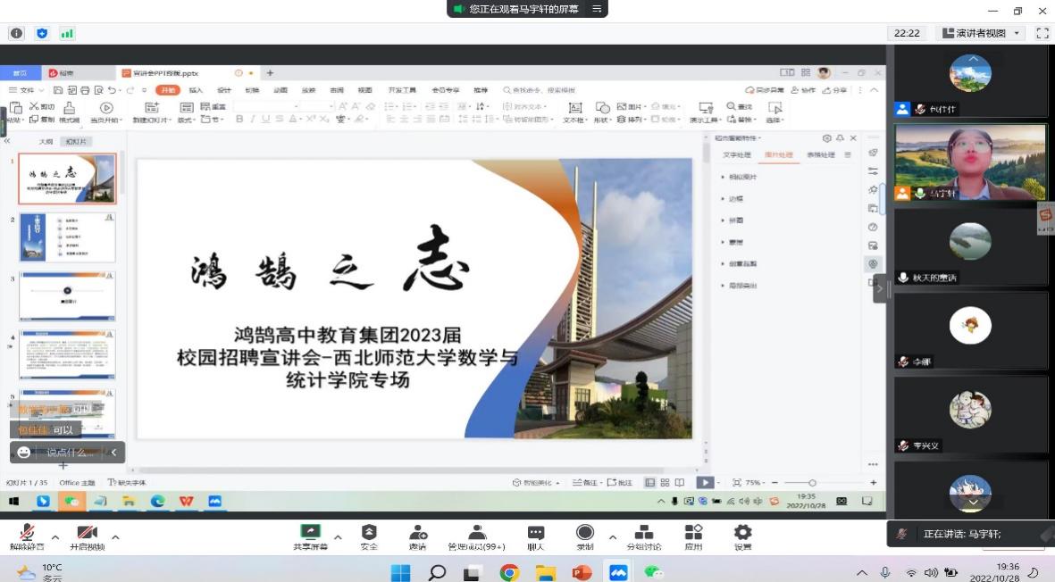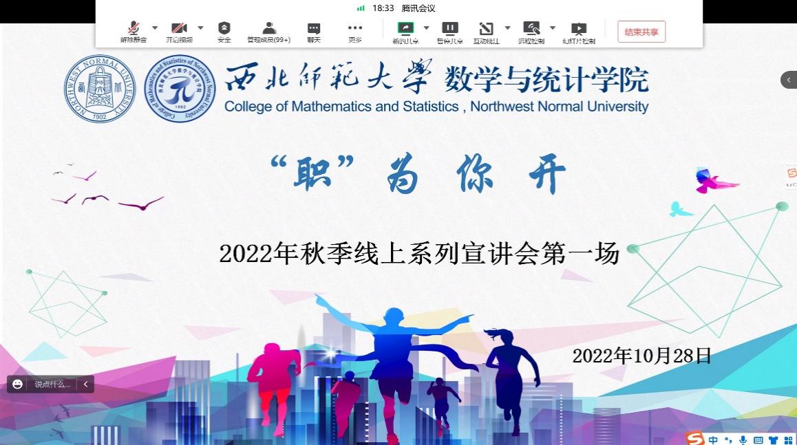 为切实做好毕业生就业工作,搭建毕业生与用人单位相互交流、双向选择的平台,为2023届毕业生提供更多的求职就业机会,20221028日晚上1930,公司举办线上四川鸿鹄高中专场招聘宣讲会。公司辅导员、毕业班班主任和2023届本硕毕业生共160余人参加。