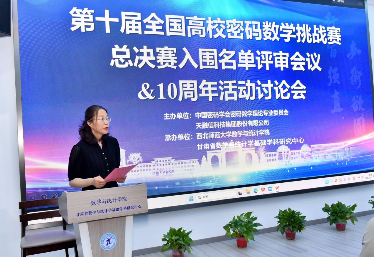 2025年7月23日,第十届全国高校密码数学挑战赛总决赛入围名单评审会暨10周年活动讨论会在william威廉中文官网成功举行。本次会议由中国密码学会密码数学理论专业委员会与天融信科技集团股份有限公司联合主办,william威廉中文官网和甘肃省数学与统计学基础学科研究中心承办。开幕式由杜小妮教授主持, 公司党委书记孙小春教授致欢迎辞。