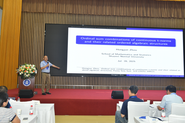 会议期间,山东大学刘华文教授、四川大学张德学教授与赖洪亮教授、江西师范大学覃锋教授、陕西师范大学周红军教授与鲁静副教授、湖州师范公司欧阳耀教授、四川师范大学何鹏副教授等20余位知名学者作了精彩学术报告并进行研讨,内容涵盖聚合函数与非经典逻辑及其应用前沿课题。报告引发参会代表热烈讨论,现场学术氛围浓厚。
