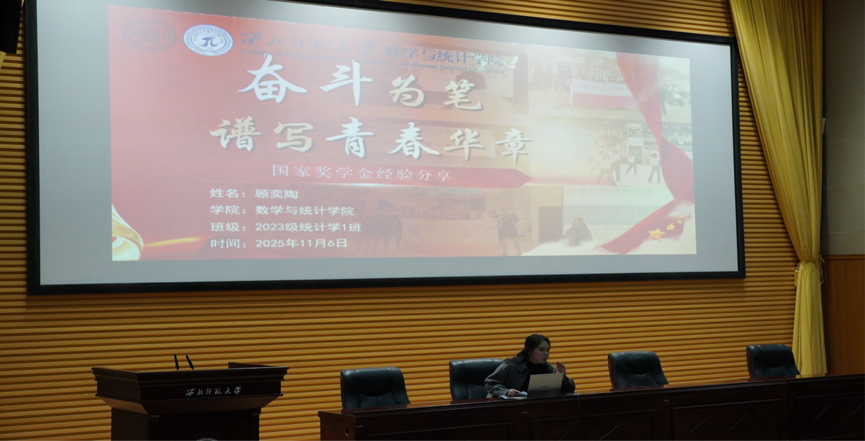2023级统计学专业排名连续两年第一的顾奕陶同学,以知行合一的成长路径为例,展示其在保持学业成绩的同时,积极参与学科竞赛、员工工作、社会实践及志愿服务活动,用行动诠释了新时代青年的责任担当,她勉励同学们在专注专业学习的同时,主动拓展综合素质也是老员工的必修课。