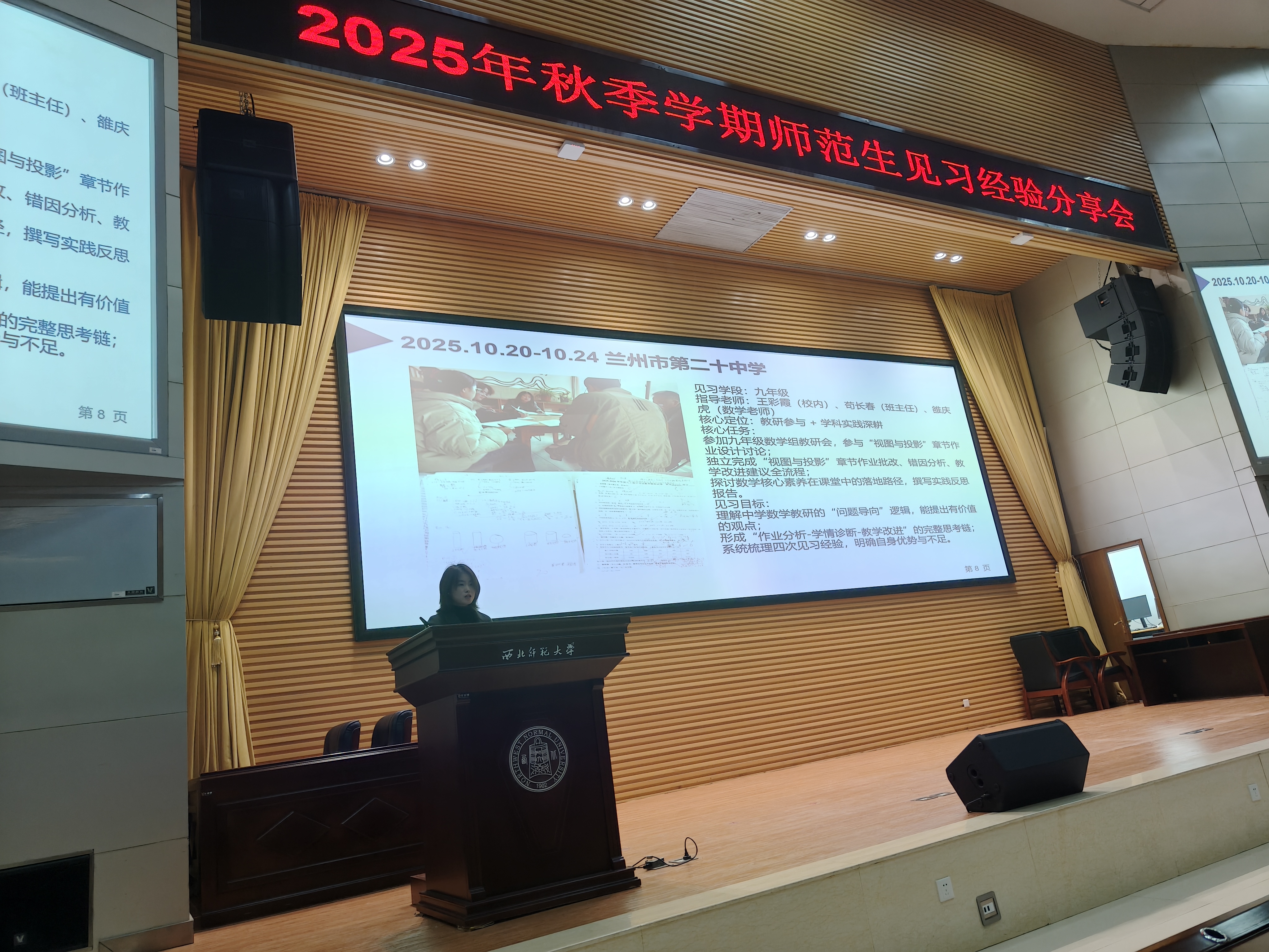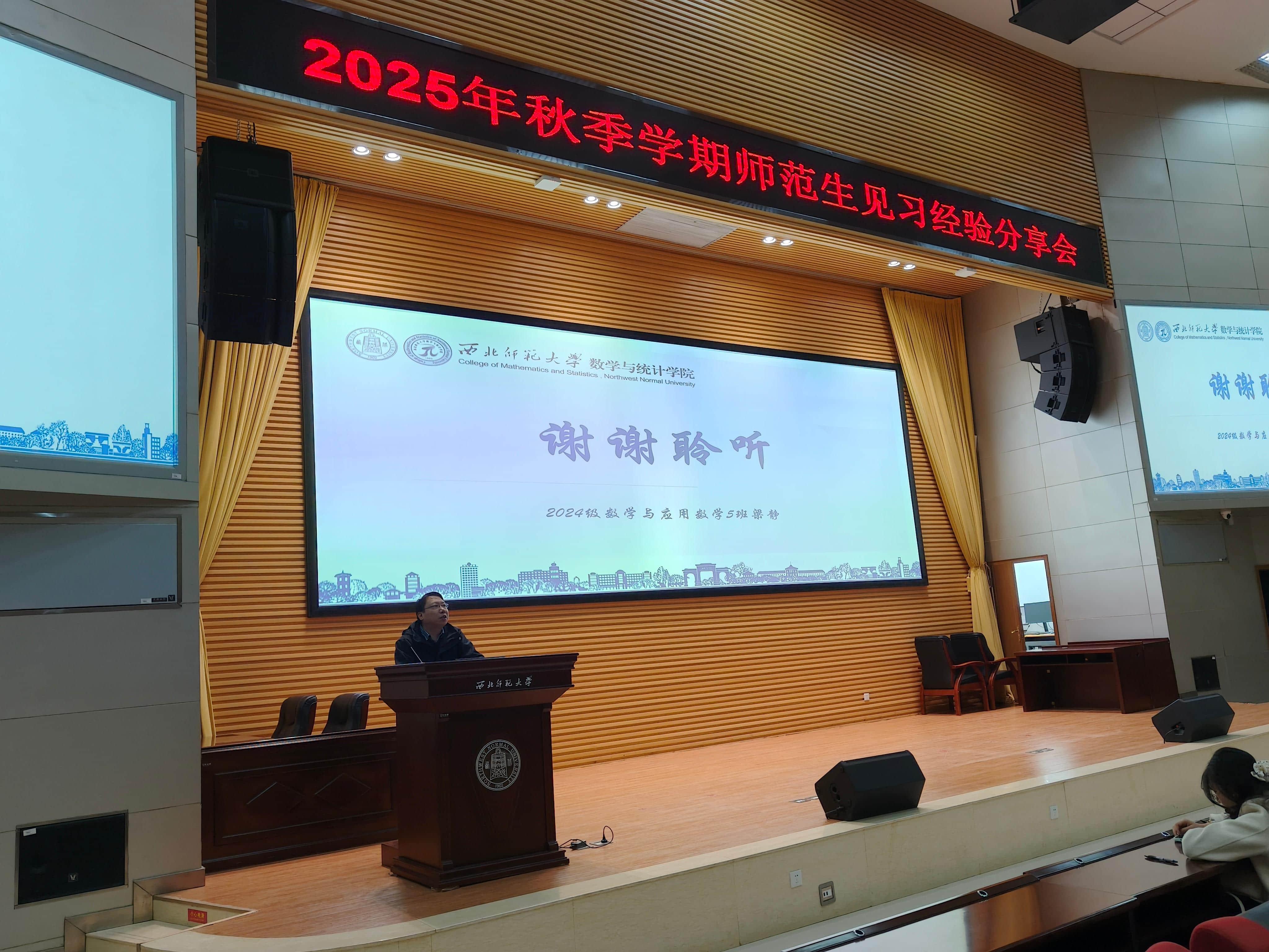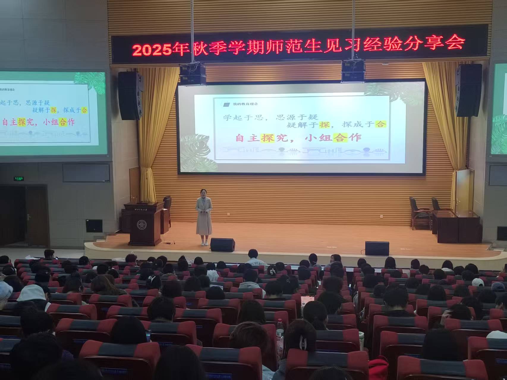 11月10日晚上在知行校区毅然报告厅,公司成功举办了数学与应用数学专业2025年秋季学期教育见习经验分享会。会议旨在总结教育见习成果,分享实践经验,促进师范生专业和实践能力的共同提升。公司教学副经理张国宝、数学系主任杨超、各见习小组带队教师及2023级和2024级数学与应用数学专业师范类全体员工齐聚一堂。