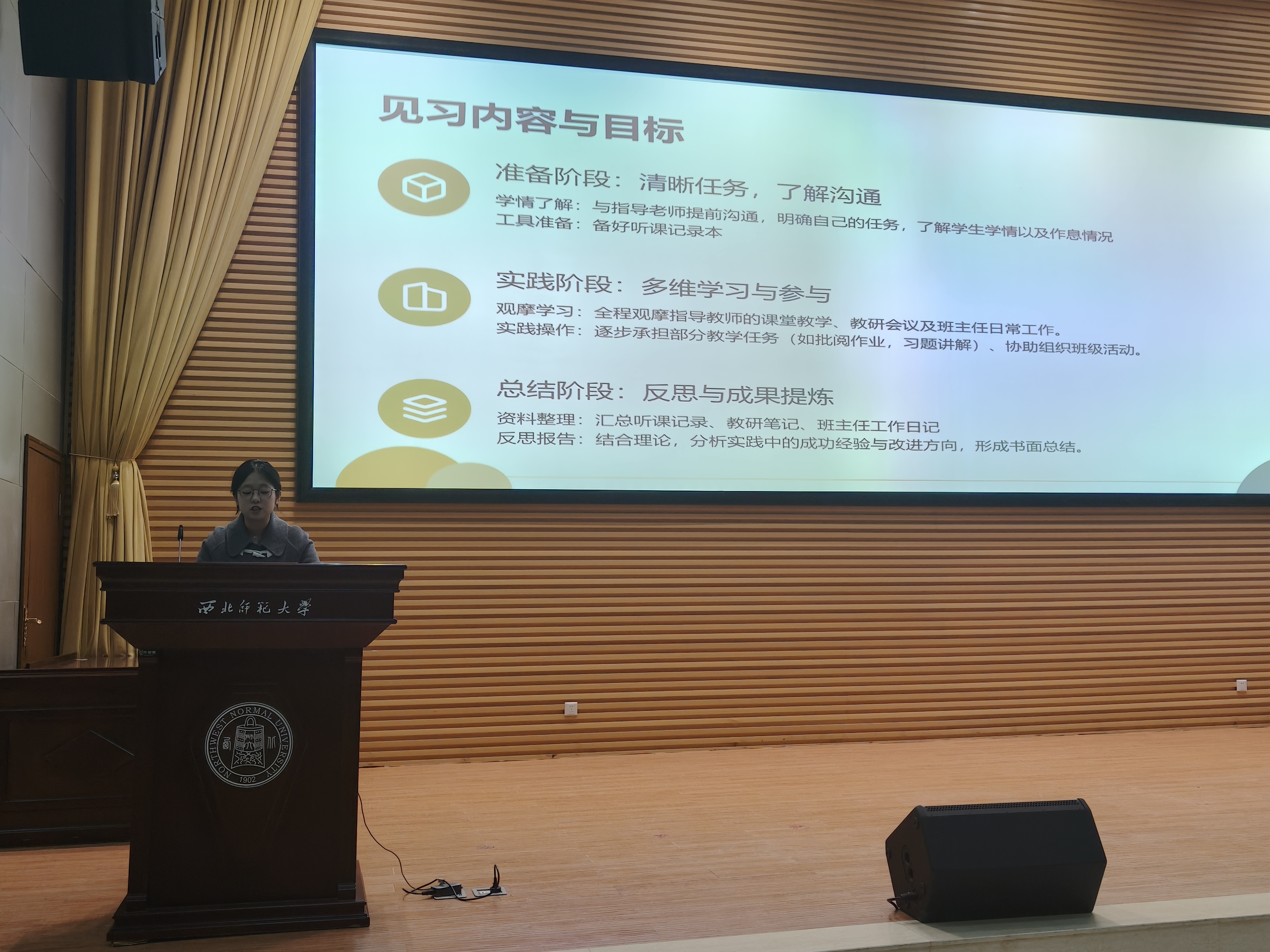 随后,来自2023级与2024级的十位优秀见习生代表依次发言。他们结合亲身经历,讲述了从课堂理论学习到真实讲台实践的挑战、收获与深刻反思,内容详实,情感真挚,展现了新一代师范生的成长与思考。