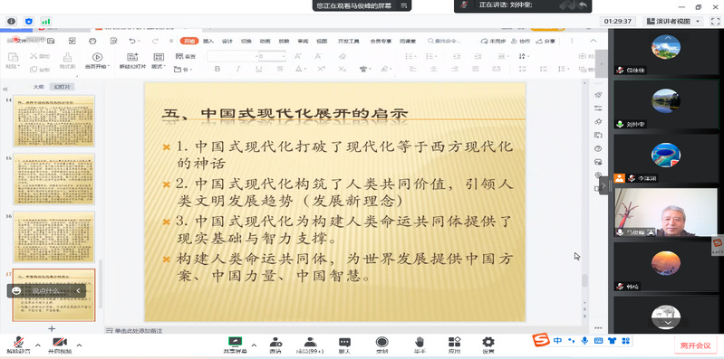 会上,马克思主义公司马俊峰教授从中国共产党第二十次全国代表大会主题的提出、如何理解西方现代性问题、中国式现代化特征、阐释中国式现代化的方法论、中国式现代化展开的启示等五个方面,对二十大报告做了深入细致的分析解读。