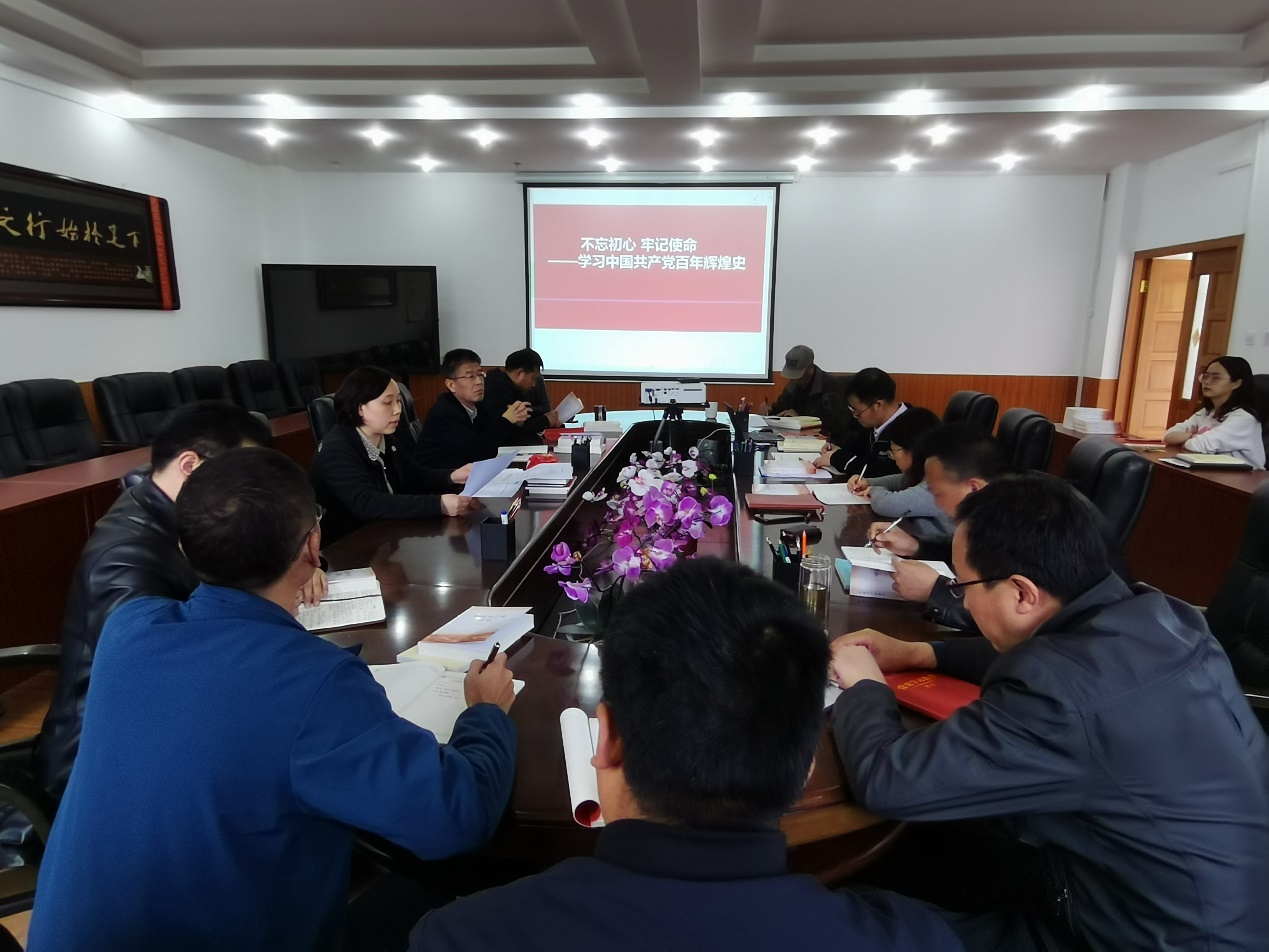 会议专题学习了习近平总书记在党史学习教育动员大会上的重要讲话精神和中共中央党史和文献研究院经理、研究员、中国中共党史学会会长曲青山撰写的文章《中国共产党百年辉煌》,学习了罗云鹏烈士的英雄事迹,研究讨论了公司党史学习教育“为党旗添光彩、为师生办实事”实践活动帮办实事项目。常正霞书记做了《不忘初心,牢记使命——学习中国共产党百年辉煌史》的专题报告。